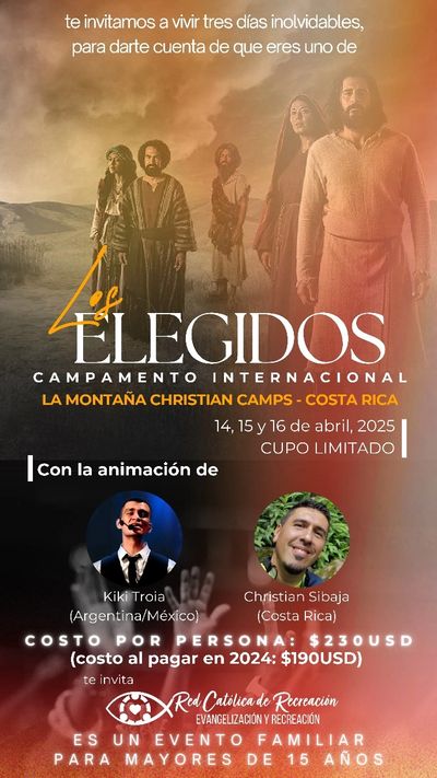 Campamento Internacional LOS ELEGIDOS, es una experiencia para encontrarnos con nosotros mismos y con Aquel que nos ha Elegido... Nuestro Señor Jesucristo. A partir de temas, espacios recreativos y momentos de interiorización e interacción, haremos un viaje junto a Jesús con el apoyo de varios momentos de la aclamada serie THE CHOSEN, compartiendo la experiencia con personas de diferentes países.